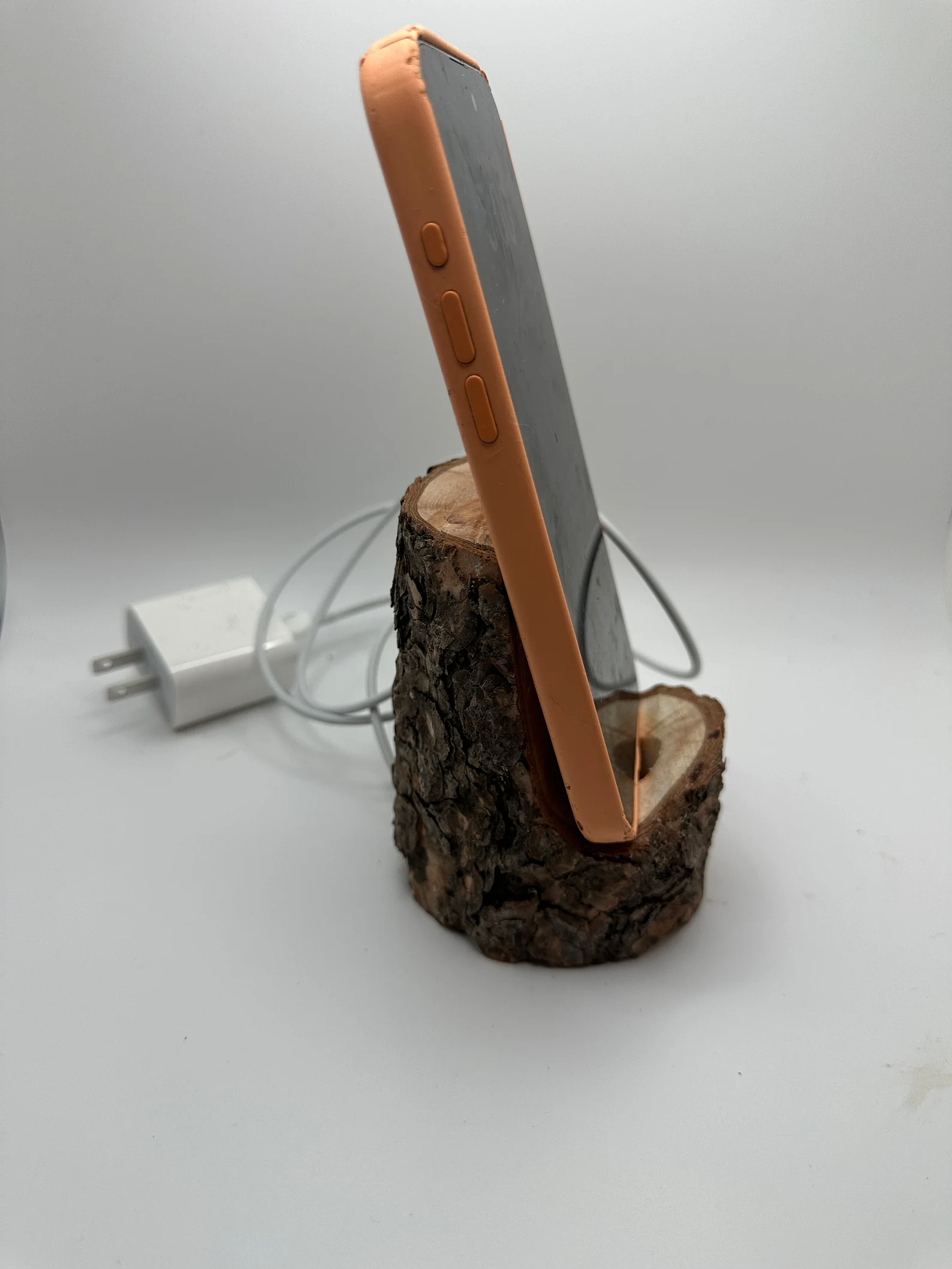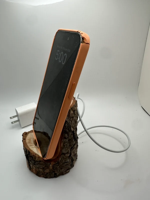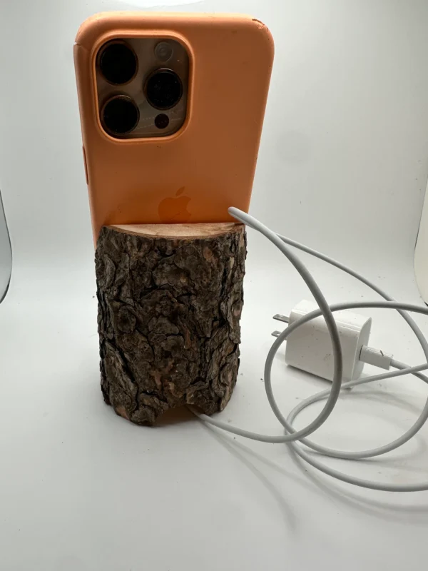 Left over parts of logs from my WHY THE LOG FACE DRAWERS that are not the right shape for drawers do not go to waste. Some of them become my CALL LOGS phone stand. They hold your iPhone while it’s plugged in steady so you can have your hands free and still view the screen.