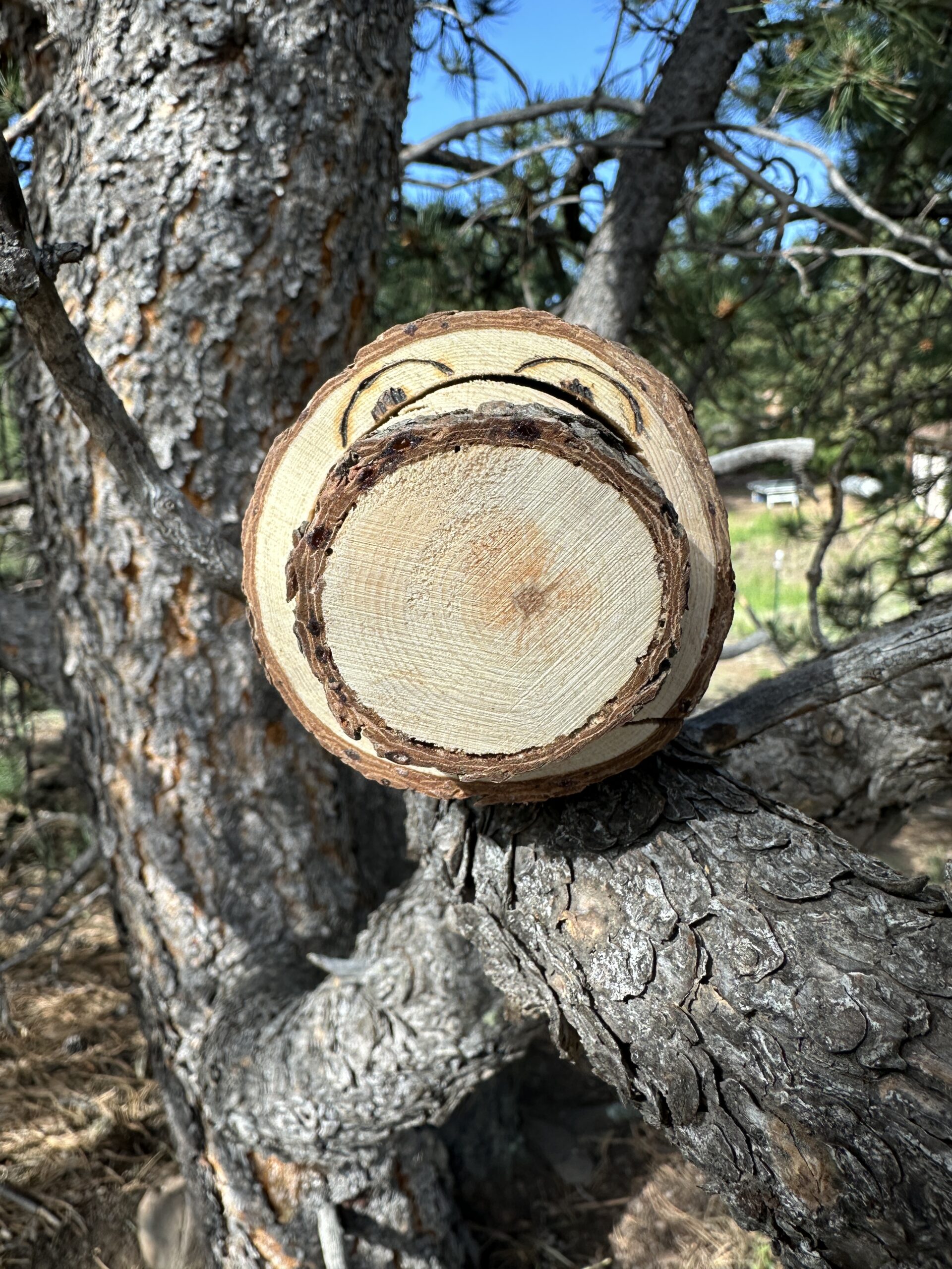 Logface Drawers are handmade in the mountains of Colorado from Pine tree branches that have have fallen down on their own. We have countless amounts of pine trees on our Colorado property and every year some of the branches finally give way under the weight of snow, wind or age.